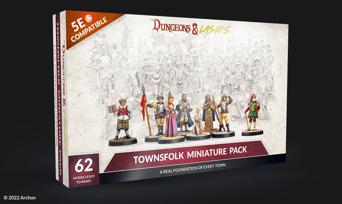 We're also happy to announce new retail releases for the Dungeons & Lasers series. It's time to bring life into your towns more than ever before! Over 60 models are available with our ‘Townsfolk Miniature Pack’ - guards, citizens, craftsmen, peasants, and children. It's a treat for miniature painters and Dungeon Masters who want to add more flavor to their campaigns.