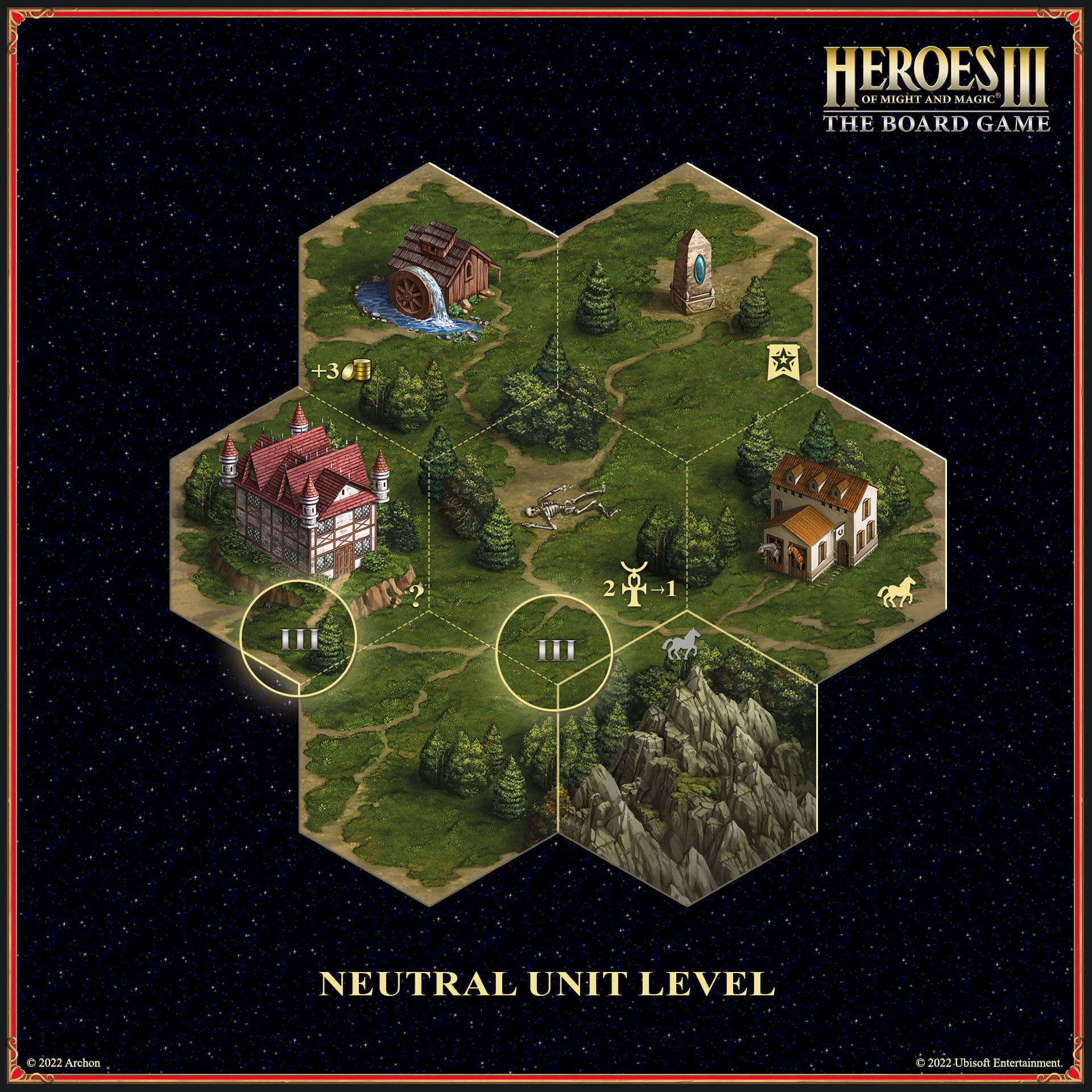 I already mentioned that a player cannot change the deployment of units after a battle has started... But what about neutral unit cards? Well, the previous player is responsible for their deployment and actions. We have taken to heart the threat of endless battles, so the Hero has to deal with a neutral unit in one round of combat (the exception is, of course, units from the azure deck); if they want to extend the battle for another round - they must spend a movement point.
