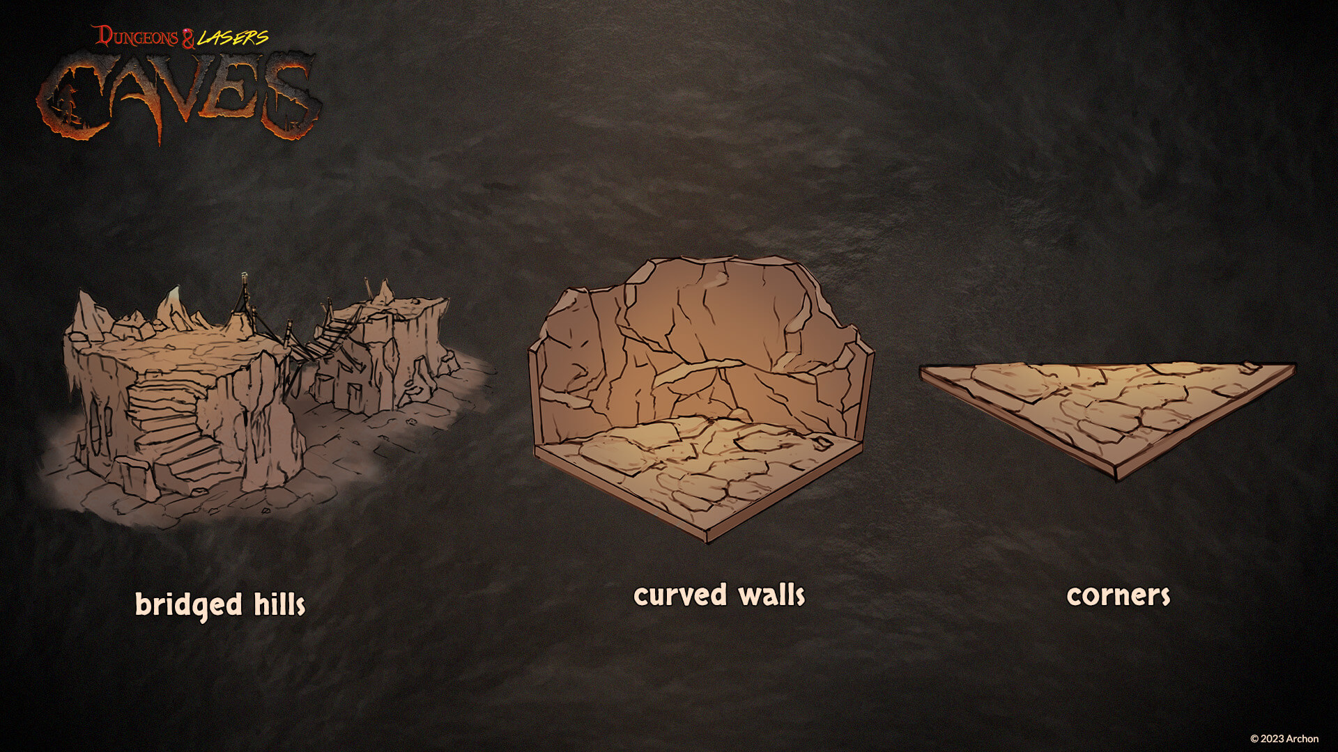 Building upon the success of our previous campaigns, Dungeons & Lasers VI promises to bring you an unparalleled modular cave terrain experience. Compatible with all other Dungeons & Lasers sets, this expansion will offer three captivating themes (and several sub-themes), and introduces innovative features such as curved walls, bridged hills, corners, among other features. Get ready to customize your dungeons with even greater versatility and bring your gaming sessions to life!