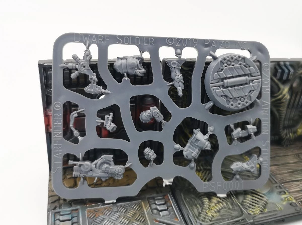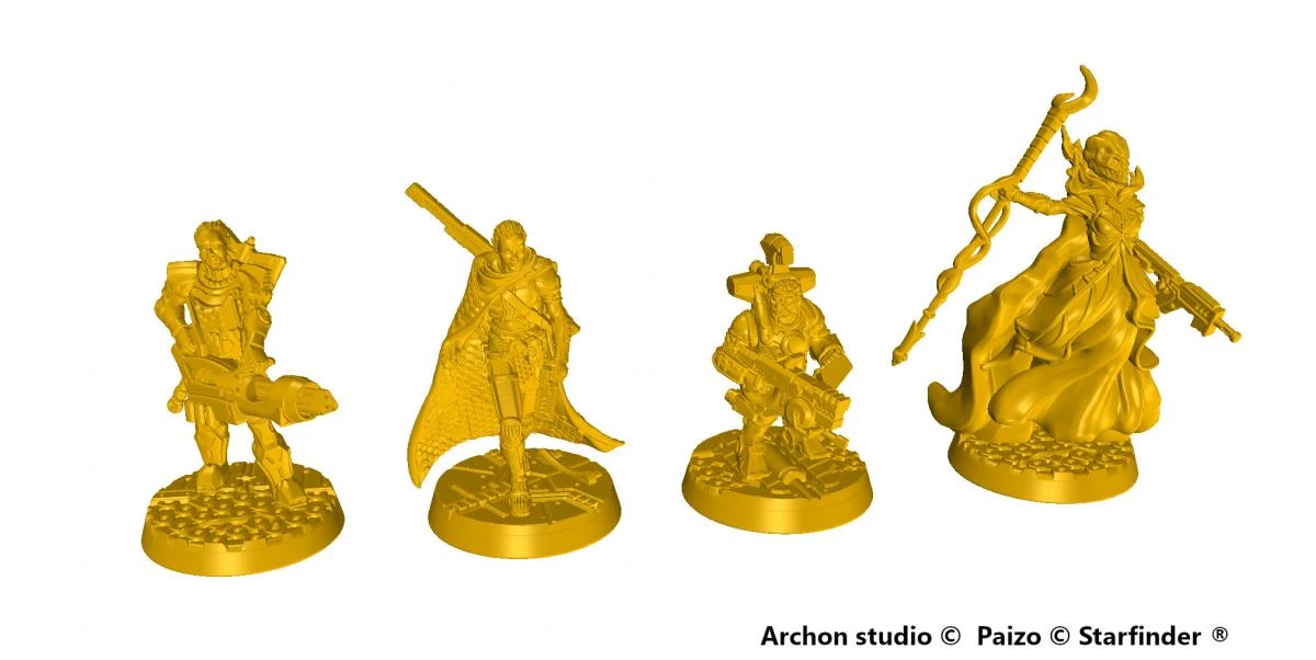 We have decided that the best course of action will be to produce all of the Starfinder minis using our brand new plastic injection system.